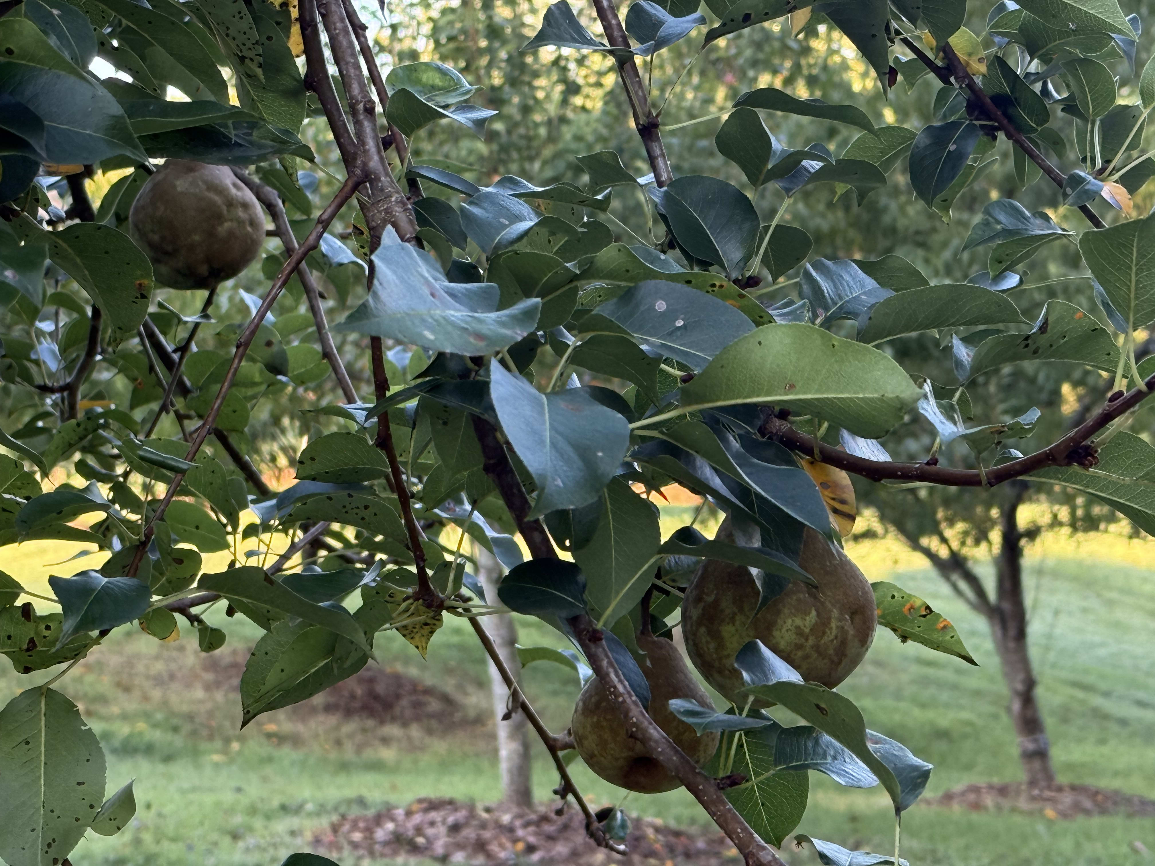 The garden has been a source of pure joy this summer, and we have managed to reduce our need to buy produce significantly. We are now harvesting Asian pears and have a good crop. However, this variety has a thick skin that has developed some blemishes due to the high number of pests in Virginia.