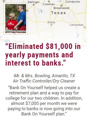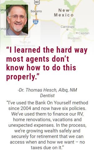 Note: The Infinite Banking Concept system uses generally available whole life policies and riders. The information presented here is for educational purposes only and is not a solicitation for the purchase of any insurance or financial product. All guarantees are based on the claims-paying ability of the insurer. Excess policy loans can result in termination of a policy. A policy that lapses or is surrendered can potentially result in tax consequences. Your results will be different from those shown on this website, as each Bank On Yourself plan is custom tailored. Bank On Yourself and its affiliates, directors, officers and employees have no control over the recommendations that Bank On Yourself Professionals or any financial representatives make to their respective clients, and as a result, shall not be held liable for any damages claimed as a result of decisions made by any financial representative.